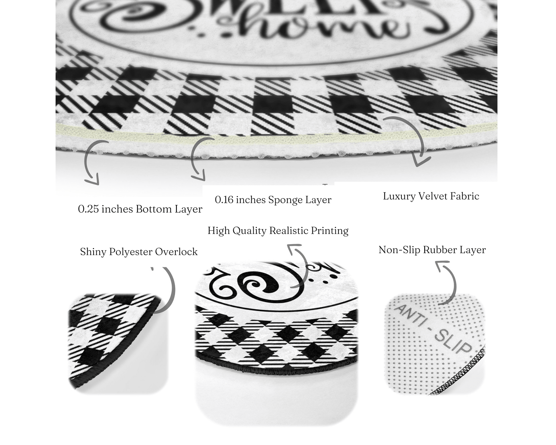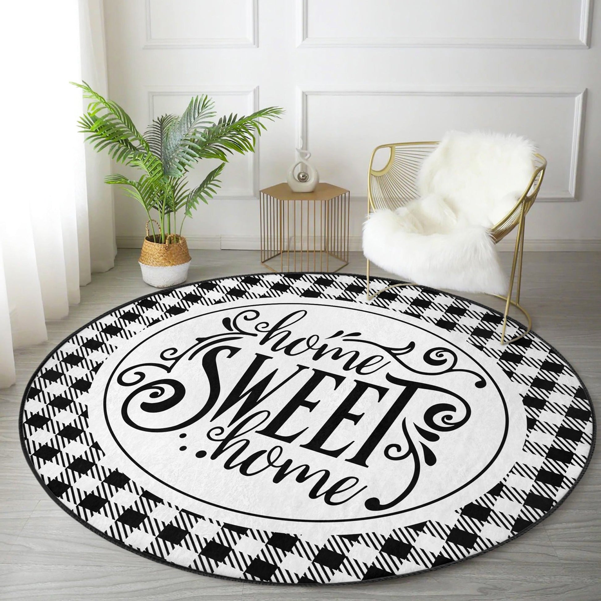 Home Sweet Home Round Rug, Home Decor Area Rug, Home Sweet Home Patterned Circle Carpet, Non Slip Rug