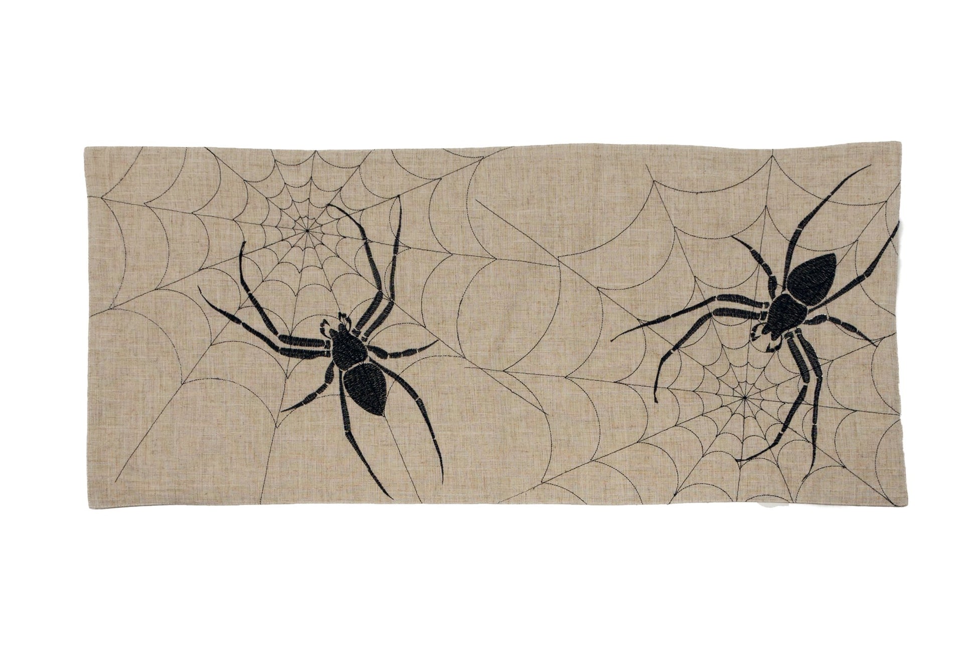 Vivid spider in its sophysticated web embroidered on linen blend fabric. Cover your table with the featured halloween design is perfect decoration and party accessory for halloween or year round use.