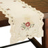 Exquisite embroidery of Christmas candles are the centerpiece on this cutwork table runner. Golden lycra accents give this runner the warm glom of a magical holiday evening. Made from easy care poliviscose and machine washable. Both inspiring and inviting, this head turning design will instantly become the centerpiece of any room.